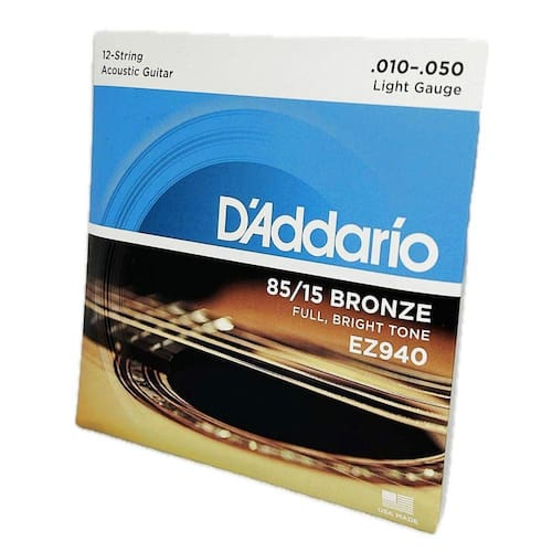 O encordoamento EZ940 foi desenvolvido para ser utilizado em violões de aço 12 cordas. Apresentam uma liga de cobre/zinco especialmente formulada que oferece um tom brilhante vintage com a qualidade de vida útil prolongada do bronze fosforoso.