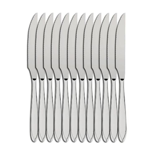 Jogo de 12 Faca de Mesa Monaco Inox Reforçado - Ad ImportFaca de churrasco, linha Mônaco light. Produto composto 100% em aço inox, acabamento de alto brilho, com detalhes em alto relevo no cabo. Perfeita para ser posta à mesa levando mais estilo, qualidade e bom gosto na hora de servir.Medida un. 21,5x2 cm. Peso un. 39,30 gr.Ref.AD0227 Marca: Ad Importação