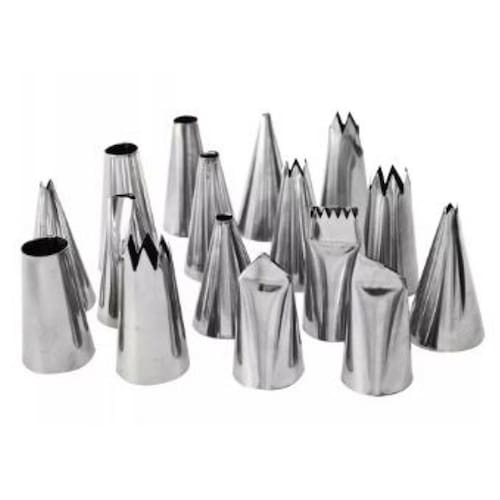 Jogo de bicos de confeitar modelos diversos Este jogo contem 16 bicos diversos ,é perfeito pra quem gosta de fazer acabamento em bolos . Ideal para confeitar, o mais diversos tipos de bolos. Suas Receitas ficarão ainda mais saborosas e sua cozinha mais charmosa com esses bicos e que podem ser utilizados em qualquer tipo de chantili. Jogo de bicos 1 bico perle liso nº 0 1 bico perle liso nº 1 1 bico perle liso nº 2 1 bico perle liso nº 3 1 bico perle liso nº 4 1 bico perle liso nº 5 1 bico pitanga crespo nº 0 1 bico pitanga crespo nº 1 1 bico pitanga crespo nº 2 1 bico pitanga crespo nº 3 1 bico pitanga crespo nº 4 1 bico pitanga crespo nº 5 1 bico serra 1 bico folha 1 bico babado 1 bico rosa Especificações Bicos em inoxidável Resistente. Possui emendas em suas laterais, proporciona uma longa durabilidade.Não enferruja. Design moderno e prático, que facilita o manuseio. Produto de fácil limpeza. Suas emendas são quase imperceptíveis, não vazam . Marca: Rocha Formas