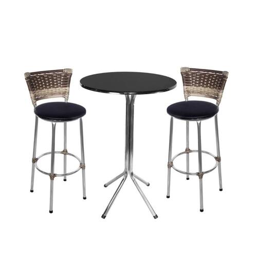Jogo de 2 Banquetas Cromada Capuccino Assento Preto com Bistro Cromado e PretoSeja para acompanhar um café rápido no início do dia ou aquela confraternização especial com os amigos, a Banqueta Alta com Encosto e a Mesa Bistrô serão grandes aliados na composição do seu espaço. Conjunto ideal para completar sua sala de jantar, espaço de churrasqueira ou até mesmo em seu estabelecimento comercial.Com design sofisticado que conta com cor sóbria, as peças embelezam o seu espaço ao mesmo tempo que garante a comodidade ideal, afinal, as banquetas possuem o assento preenchido em espuma recebe superbem o corpo além do suporte para os pés.Características da Banqueta com EncostoCor da estrutura: Cromada Cor do Assento: PretoCapacidade (kg): 120 kgMaterial da estrutura: Tubos de Aço carbono (7/8 de polegada)Material do assento: MDF e EspumaMedidas da Banqueta Alta com Encosto Altura do assento até o chão (cm): 72 CmAltura do encosto até o chão (cm): 95 CmDiâmetro do assento: 32 CmCaracterísticas da Mesa BistrôCor Estrutura: CromadoCor Tampão: PretoMaterial Bistrô: Tubo 1 e 1/8Material do Tampo: MDF 15mmAcabamento Mesa: Pintura Epóxi em PóAcabamento Tampo: Pintura UVMontagem: Encaixe simples e parafusos no tampoMedidas da Mesa BistrôAltura Total do Produto: 80cmDiâmetro da Tampa: 60cmEspessura da Tampa: 15mmPeso Máximo Recomendado sob o Produto: 15 kg Conteúdo da Embalagem: 2 Banquetas e 1 Mesa BistrôDicasNão deixe suas banquetas e bistrô expostos ao sol por mais de 4 horas.Não use produtos abrasivos na limpeza.Usar um pano umedecido na limpeza e, logo em seguida, seque-as com um pano seco.A tonalidade da cor pode variar de acordo com o lote do fabricante e/ou as configurações de seu monitor.*Imagens meramente ilustrativasGarantia3 Meses contra defeito de fabricação