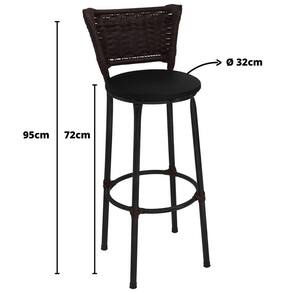 Jogo de 2 Banquetas Preta Junco Argila Assento Preto com Bistro Preto e Preto