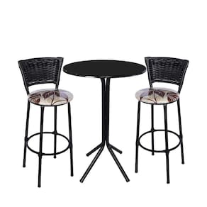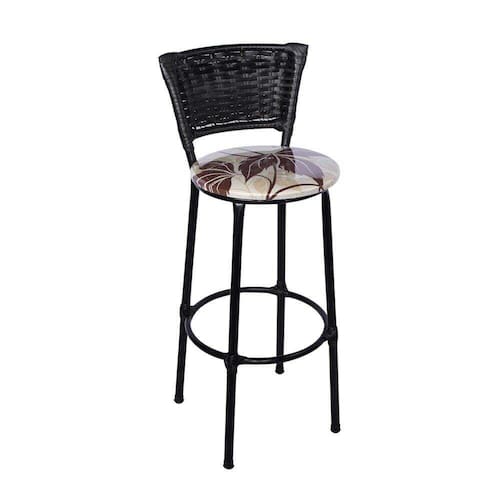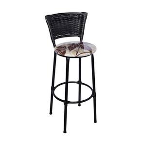 Jogo de 2 Banquetas Preta Junco Preto Assento Floral Marrom com Bistro Preto e Preto