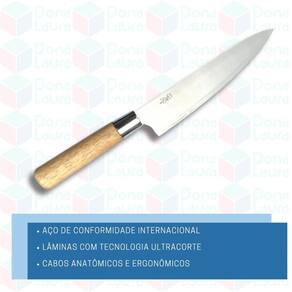 Aço inox forjado de alta qualidade para durabilidade e resistência. Cabo em madeira de lei e lâmina em Inox de 20,3 centímetros fazem sucesso entre os Sushiman.