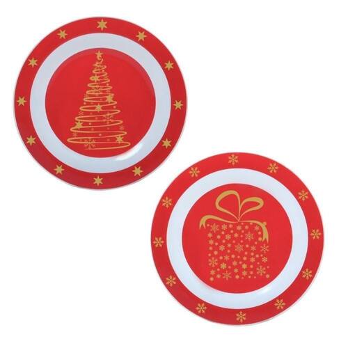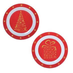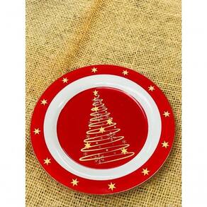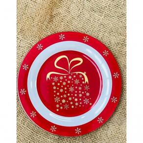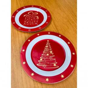 Cor: Vermelho | Louças e Artigos para Servir: Prato | Produto: Conj c/2 pratos sobremesa 20cm árvore e presente