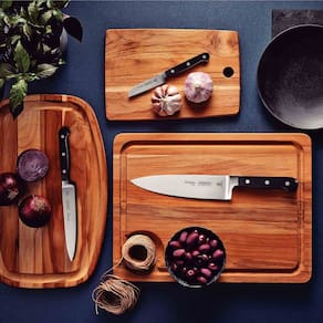 Recomenda-se o uso de tábuas de polipropileno ou madeira da Tramontina para maior durabilidade do fio das facas;