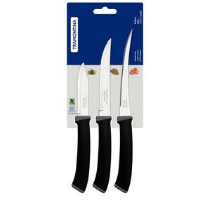 Jogo de Facas Tramontina Felice 3 peças Preto Aço Inox Cozinha Legumes Tomate Churrasco.