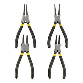 Jogo de Alicates para anéis externos e internos com bicos retos e curvos. São fabricados em aço carbono e contam com cabos ergonômicos em PVC. Marca: eda Características: -material: Aço carbono e plástico PVC. -medida: 7 Pol. -cabo ergonômico. -sistema de mola. -alta durabilidade. Conteúdo: -alicate para anéis 7 - Interno reto. -alicate para anéis 7 - Interno curvo. -alicate para anéis 7 - Externo reto. -alicate para anéis 7 - Externo curvo. Aplicação: ideal para uso em mecânica, montar e desmontar anéis de segurança. Código: 0ab