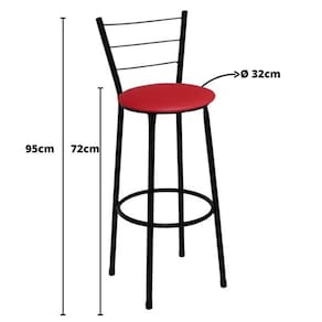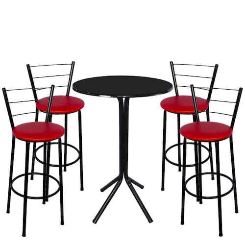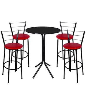 Jogo de 4 Banquetas Preta Assento Vermelho com Bistro Preto e Preto