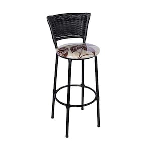 Jogo de 4 Banquetas Preta Junco Preto Assento Floral Marrom com Bistro Preto e Preto