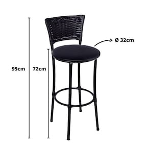 Jogo de 4 Banquetas Preta Junco Preto Assento Preto com Bistro Preto e Preto