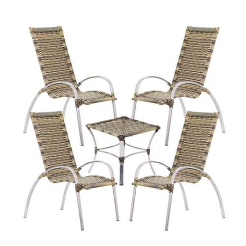 Jogo De 4 Cadeiras e Mesa Garden em Aluminio Para Area, Piscina Trama