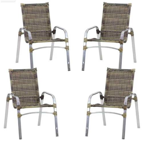 Jogo de 4 Cadeiras Emily em Aluminio Area Varanda e Mesa de Centro Garden em Aluminio Trama