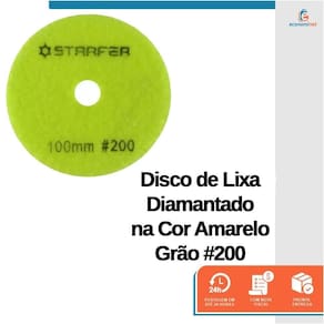 Disco de lixa diamantado para polimento, abrasivo em resina branca, com pluma na parte traseira. Indicado para lixar e polir mármore e porcelanato. Para uso em disco de borracha 100mm - starfer