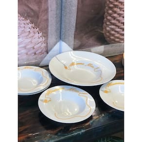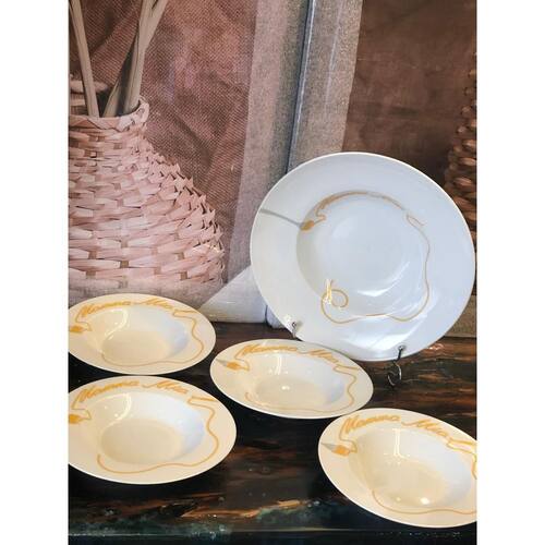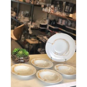Jogo de 5 peças para massa em porcelana (1 X D30,5cm + 4 X D21,5cm) Sobre a L'Hermitage Inspirada pelas formas, cores e sentidos... pesquisadora de pessoas e tendências. Apaixonada por histórias, destinada a protagonizar a decoração e a mesa. A L'Hermitage se tornou símbolo de bom gosto e paixão por beleza na decoração e na mesa posta. A diversidade de materiais e de tipos de produtos faz da L'Hermitage uma das marcas mais amadas pelo brasileiro em produtos para a casa. L'Hermitage: criada para decorar, usar e sentir. Fotos Ilustrativa