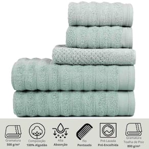 Jogo de 5 Toalhas Fio Penteado 100% Algodão Aura Verde - Atlântica