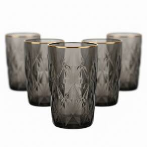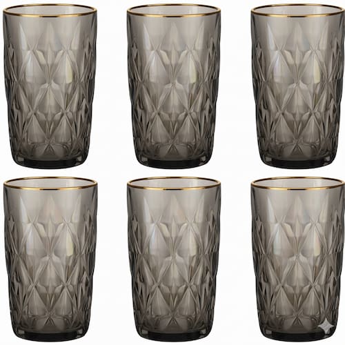 Jogo De 6 Copos Altos 400ml Cinza Borda Dourada Diamond Em Casa Tem Ref: 16899