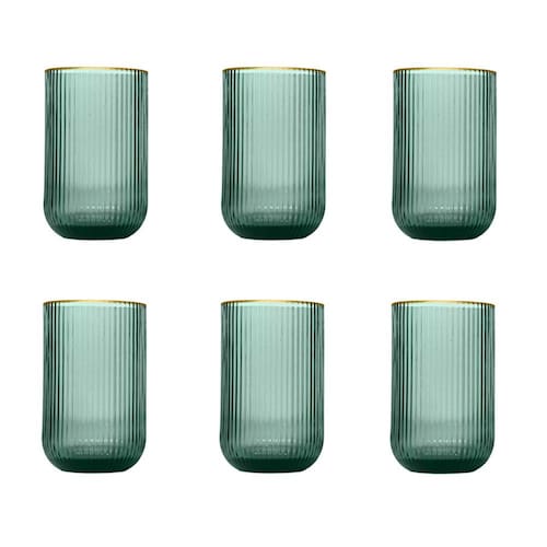 Saiba mais sobre o Jogo de 6 Copos em Cristal Verde com Borda Dourada 425ml: