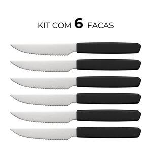 Jogo de 6 Facas Cabo Preto de Plástico Berlim 20cm Em Casa Tem
