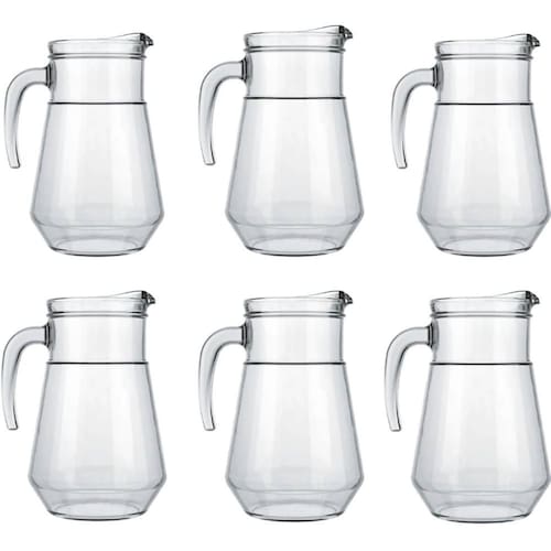 Garantia: 90 dias / Peso: 4,98kg / Cor predominante: transparente / Referência: 7891155012825X6 Dimensões: 16,3cm (C) x 13,7cm (L) x 21,7cm (A); Conteúdo do jogo: 6 jarras; Capacidade: 1,5l; Material: vidro. Aviso: supervisionar o uso pelas crianças.