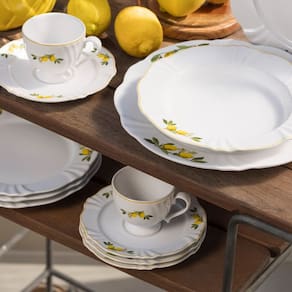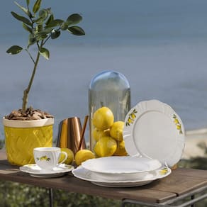 A história da porcelana está profundamente conectada à Itália. Foi na China durante a dinastia Tang que se tem registro da criação da primeira peça em porcelana. Porém, foi somente na Itália que o material se popularizou e ganhou nome. O limão siciliano é um tema comum nas cerâmicas e também na culinária italianas e na decoração Limoni é a estrela principal que resgata um pedaço história da porcelana.