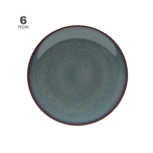 6 Pratos Rasos Wolff Reactive Glaze de Porcelana Cinza 28cm