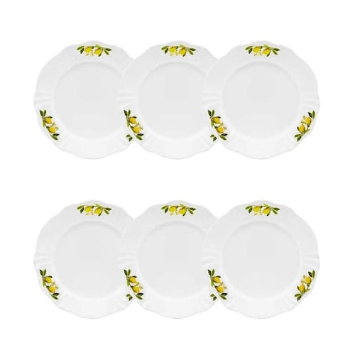 Tipo Sobremesa Uso Resistente a micro-ondas, Resistente a lava-louças Cor Amarelo, Branco, Verde Material Porcelana Conteúdo da embalagem 6 Pratos Sobremesa 23 Cm Linha/Decoração Soleil Limoni Conjunto ou avulso Conjunto Tipo da embalagem Papelão pardo Formato Redondo, Relevo Decoração Estampado