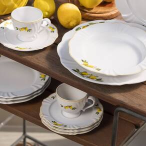 A história da porcelana está profundamente conectada à Itália. Foi na China durante a dinastia Tang que se tem registro da criação da primeira peça em porcelana. Porém, foi somente na Itália que o material se popularizou e ganhou nome. O limão siciliano é um tema comum nas cerâmicas e também na culinária italianas e na decoração Limoni é a estrela principal que resgata um pedaço história da porcelana. ESPECIFICAÇÕES