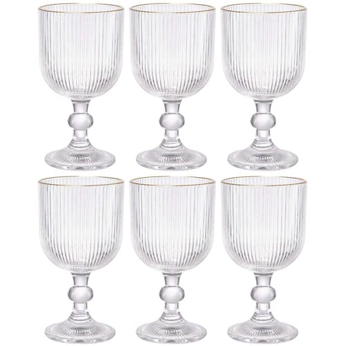 Jogo de 6 Taças de Cristal Ecológico Cameratta com Borda Dourada 365ml - L'Hermitage
