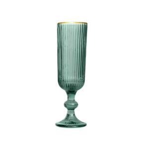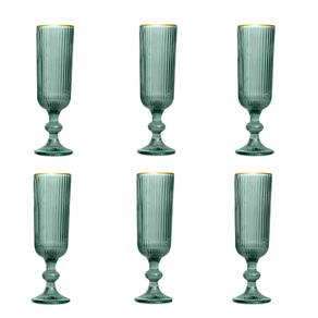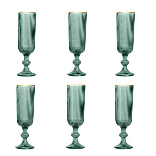 Apresentamos o Jogo de 6 Taças para Champanhe em Cristal Verde com Borda Dourada 160ml: