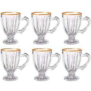 - Contém: 6 Xícaras (Não tem Pires) - Dimensões da Peça: Altura: 9 x Diâmetro: 6cm - Material: Cristal ecológico - Cor: Transparente - Tipo de Embalagem: Caixa litografada - Capacidade: 90ml - Marca: Dynasty
