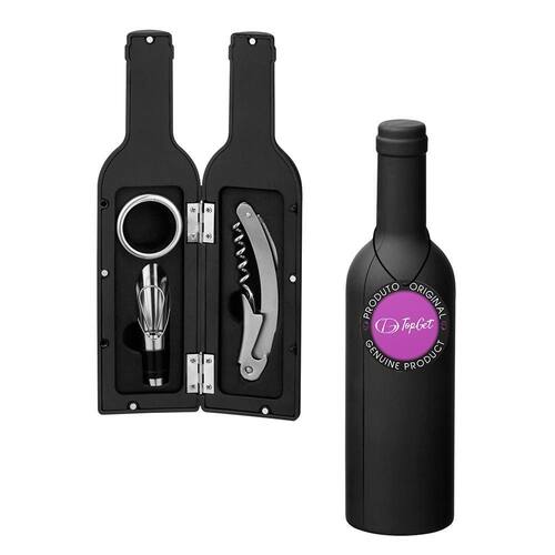 Jogo de Acessórios para Vinhos 3 Peças Jersey TopGet. O conjunto para vinho é composto por três peças elegantes, todas feitas em metal de alta qualidade. Inclui um saca-rolhas com de sommelier, perfeito para abrir garrafas com facilidade e também para realizar outras tarefas relacionadas ao vinho. Além disso, conta com uma gargantilha que ajuda a evitar que o líquido escorra pela garrafa, mantendo a apresentação impecável. Também está incluso um salva-gotas com tampa, permitindo servir o vinho sem derramar uma gota. Esse conjunto é fornecido em um estojo de com formato de garrafa, apresentando um acabamento em borracha que adiciona um toque de sofisticação. Especificações: Material: Metal Dimensões: 6,3 x 23,6 cm Marca: Não Informado Ean: 7908335224432
