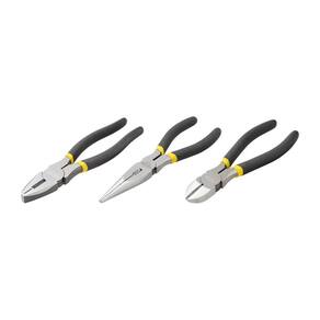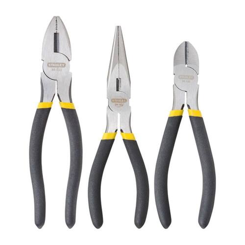 Jogo de Alicates 3 Peças BlackDecker Características: Testado e aprovado individualmente. Corpo fabricado em cromo vanádio. Cabo emborrachado para maior segurança do operador garantindo maior resistência e proteção. Cabo com isolamento de 1000V. Aplicações: para puxar, prender, enrolar, deformar, girar e cortar cabos e arames. Alicate Corte Diagonal 6 Polegadas 150mm . Alicate Meia Cana 6 Polegadas 150mm . Alicate Universal 8 Polegadas 200mm do Fornecedor: 12 meses Marca: Não Informado