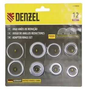 Jogo De Anéis Redução Para Discos Diamantados / Serras 12 Peça Produto: Jogo de anéis de redução para discos diamantados e discos de serras 12 peças Marca: Denzel Descrição: O Jogo de anéis de redução para discos diamantados e discos de serras 12 peças 7339955 da Denzel é a solução perfeita para ajustar o tamanho do furo de montagem de lâminas de serra e discos de diamante.  Com diâmetros variados, como 32 x 30, 30 x 25,4, 25,4 x 22,2, 22,2 x 20, 20 x 16, 30 x 22,2, 25,4 x 16, e 22,2 x 16 mm, esses anéis são projetados para proporcionar um encaixe preciso e seguro em serras circulares e de esquadria.  Combinando diferentes anéis do conjunto, você garante um ajuste perfeito para qualquer diâmetro de montagem. Características: • Confiabilidade e Durabilidade: Fabricados em aço 50 e galvanizados, os anéis oferecem proteção contra corrosão, garantindo longa vida útil e desempenho confiável. • Alta Precisão de Fabricação: Os anéis são projetados para garantir uma instalação fácil e precisa da ferramenta no eixo, evitando folgas e garantindo cortes precisos. • Conjunto Bem Pensado: Com 12 peças, o conjunto inclui os tamanhos mais populares fornecidos em pares, oferecendo flexibilidade e conveniência para diversas aplicações. O Jogo de Anéis para Redução Denzel é essencial para quem busca precisão e segurança no ajuste de suas ferramentas de corte.  Seja para ou em projetos de bricolagem, esses anéis garantem que suas lâminas e discos estejam sempre firmemente fixados, proporcionando cortes consistentes e seguros. Experimente a qualidade e a versatilidade do Jogo de Anéis para Redução Denzel e eleve a eficiência de suas operações de corteEspecificações: Diâmetros variados: 32 x 30, 30 x 25,4, 25,4 x 22,2, 22,2 x 20, 20 x 16, 30 x 22,2, 25,4 x 16, e 22,2 x 16 mm.