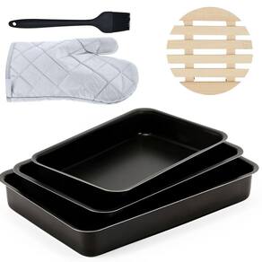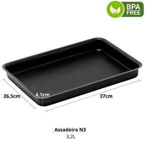 01 Assadeira N1 01 Assadeira N2 01 Assadeira N3 01 Luva Térmica de Cozinha 01 Pincel Culinário de Silicone 01 Descanso de Panela