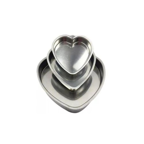 Jogo de assadeira de alumínio prensado em formato de coração composto por 3 (três) peças, sendo os tamanhos / capacidade: