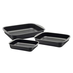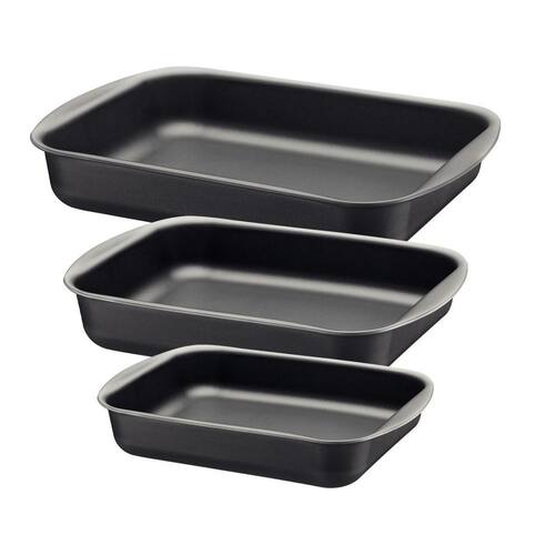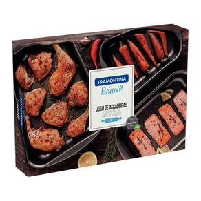 Jogo De Assadeiras 3pcs Grafite Tramontina Tenha uma cozinha bem equipada para preparar as melhores receitas Com o jogo de assadeiras Tramontina Brasil em alumínio com revestimento antiaderente Starflon Max 3 peças você vai possuir produtos versáteis e práticos para preparar inúmeras receitas. Na cor grafite, as peças são produzidas em alumínio com revestimento interno e externo antiaderente Starflon Max, materiais que possibilitam que as receitas assem de maneira mais uniforme e evitam que os alimentos grudem. Além disso, elas são fáceis de limpar e podem ir à máquina de lavar louças. Versáteis, são um jogo indispensável para você ter em sua casa