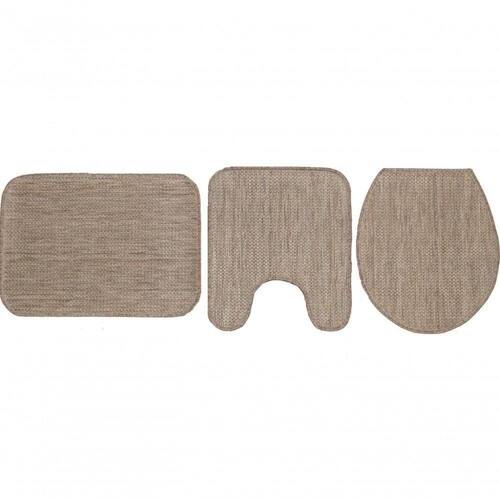 Ficha Técnica Informações técnicas para esse produto Produto Jogo de Banheiro Natural Look Qualidade Sisal Jacquard Densidade 320 pontos/m Batidas 550 linhas/m Pelos 352.000 Superfície 100% Polipropileno Poliseda Altura do Pelo Flatweave Medidas 1 peça 042x050 + 1 peça 042x050 + 1 peça 042x060 Base Antiderrapante *Fotos ilustrativas. Variações de cores podem acontecer em diferentes aparelhos/equipamentos. Contraste e brilho são configurados de forma diferente em cada marca de smartphone, monitor e televisão.