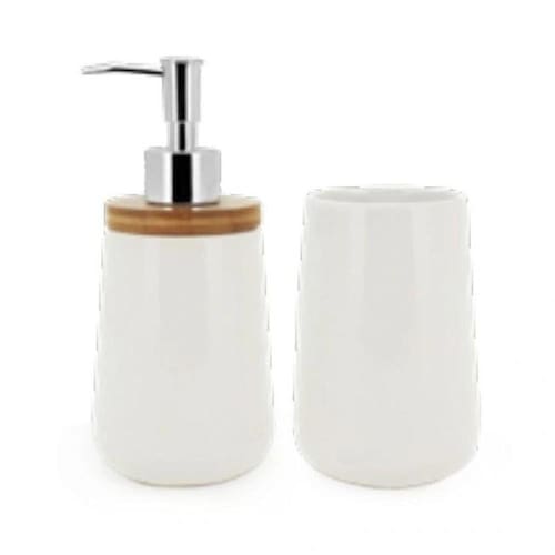 Jogo De Banheiro Bambu White 2 Peças Bh20101 Belo jogo para banheiro mimo composto por 02 peças fabricadas em cerâmica de ótima durabilidade e alta resistência. Ideal para quem preza por qualidade e elegância, o conjunto apresenta design charmoso com acabamento externo todo caracterizado por finas linhas e sofisticada cor em tom bronze. Aposta certa para levar requinte e praticidade ao seu banheiro. Eventualmente, utilizar esponja macia e detergente neutro para limpar os itens. Composição: 01 saboneteira: altura - 20 cm 01 porta-escovas: 14cm