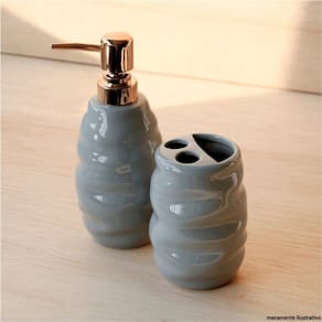 O conjunto de banheiro com porta sabonete líquido e porta escovas é um conjunto prático e funcional para organizar e armazenar seus itens de higiene pessoal de maneira conveniente. Ele é projetado para agregar estilo e funcionalidade ao ambiente do seu banheiro.