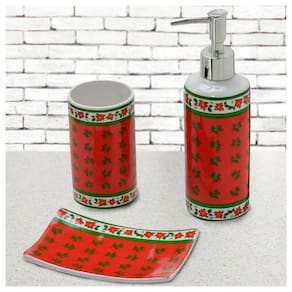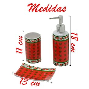 Jogo com 3 peças para banheiro em ceramica contendo, 1 porta escovas, 1 saboneira liquida e 1 saboneteira.