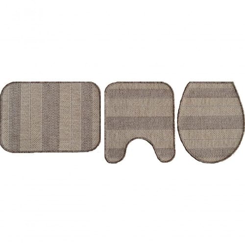 Ficha Técnica Informações técnicas para esse produto Produto Jogo de Banheiro Natural Look Qualidade Sisal Jacquard Densidade 320 pontos/m Batidas 550 linhas/m Pelos 352.000 Superfície 100% Polipropileno Poliseda Altura do Pelo Flatweave Medidas 1 peça 042x050 + 1 peça 042x050 + 1 peça 042x060 Base Antiderrapante *Fotos ilustrativas. Variações de cores podem acontecer em diferentes aparelhos/equipamentos. Contraste e brilho são configurados de forma diferente em cada marca de smartphone, monitor e televisão.