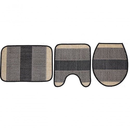 Ficha Técnica Informações técnicas para esse produto Produto Jogo de Banheiro Natural Look Qualidade Sisal Jacquard Densidade 320 pontos/m Batidas 550 linhas/m Pelos 352.000 Superfície 100% Polipropileno Poliseda Altura do Pelo Flatweave Medidas 1 peça 042x050 + 1 peça 042x050 + 1 peça 042x060 Base Antiderrapante *Fotos ilustrativas. Variações de cores podem acontecer em diferentes aparelhos/equipamentos. Contraste e brilho são configurados de forma diferente em cada marca de smartphone, monitor e televisão.