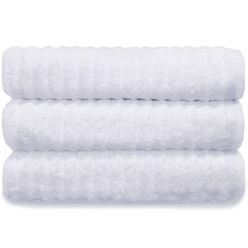 Cada toalha de banho pesa 565 gramas, elas são bem grossas e felpudas.