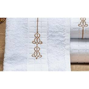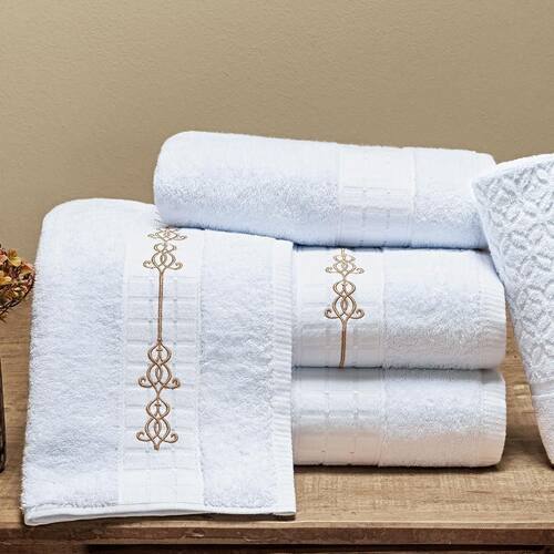 Com o Jogo de Banho Torino 5Pçs 100% Algodão Egípcio Branco/Dourado, você terá toalhas de excelente qualidade, duráveis e com um toque suave e macio. Renove o seu banheiro com esse jogo de banho luxuoso e proporcione a você e sua família momentos de conforto e bem-estar.