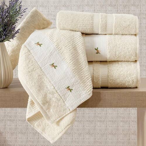Jogo De Banho Ellora 5Pçs Bordado 100% Algodão Palha