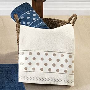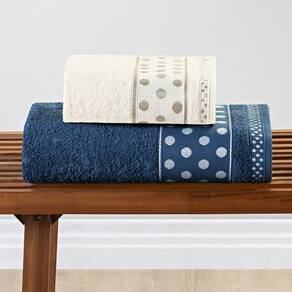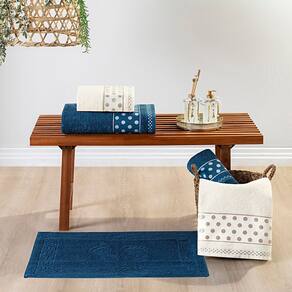 Jogo de Banho Meggy Poá Bolinhas Toalhas Macias 100% Algodão 5 Peças - Azul Marinho e Pérola - Única