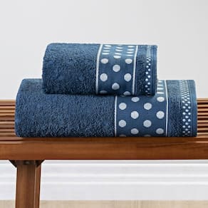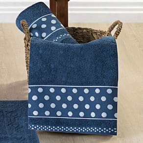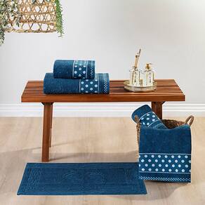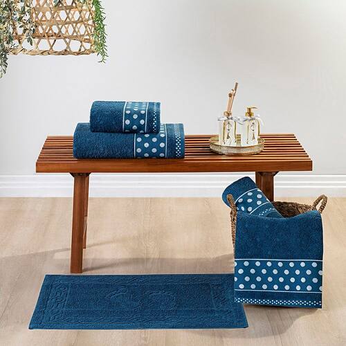 Jogo de Banho Meggy Poá Bolinhas Toalhas Macias 100% Algodão 5 Peças - Azul Marinho - Única