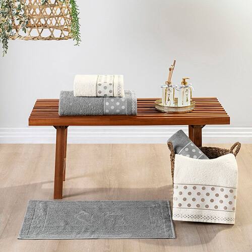 Jogo de Banho Meggy Poá Bolinhas Toalhas Macias 100% Algodão 5 Peças - Cinza Granito e Pérola - Única