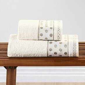 Jogo de Banho Meggy Poá Bolinhas Toalhas Macias 100% Algodão 5 Peças - Pérola - Única