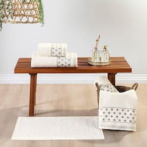 O Jogo de Banho Petit Poá é lindamente trabalhado em tecido 100% algodão, a gramatura 450gm2 conta com um padrão de desenho nas toalhas e um perfeito acabamento.